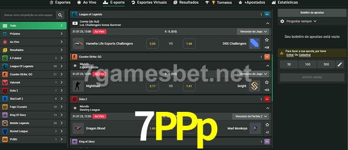 A aposta 7PPp oferece aos jogadores a experiência mais conveniente de apostas em eSports!